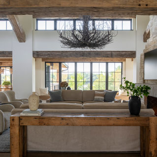 We worked hard to make the home work with the lay of the land and to ensure the views captured that. We designed a bridge that goes over a small river. To bring light into the lower level, the bridge goes over a pathway and underneath a link that connects the garage to the house.